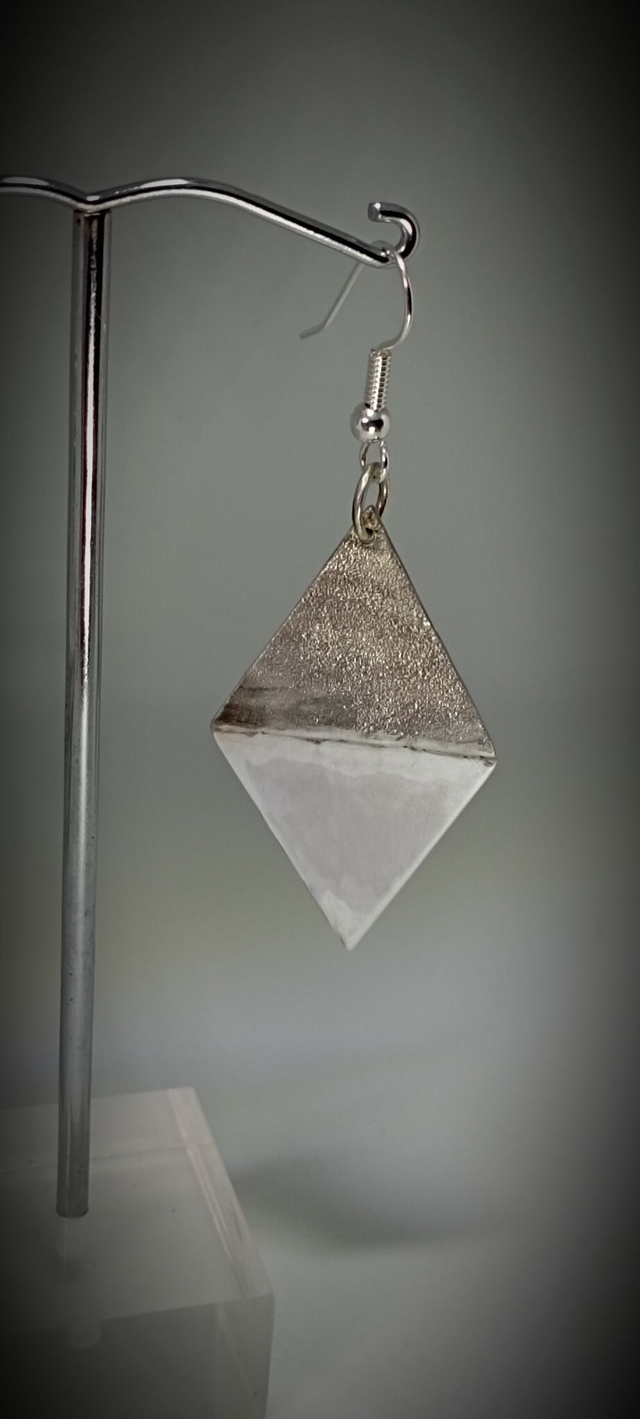 Composé d'un triangle lisse et d'un autre texturé par réticulation. Ils ont été soudé pour former un losange.